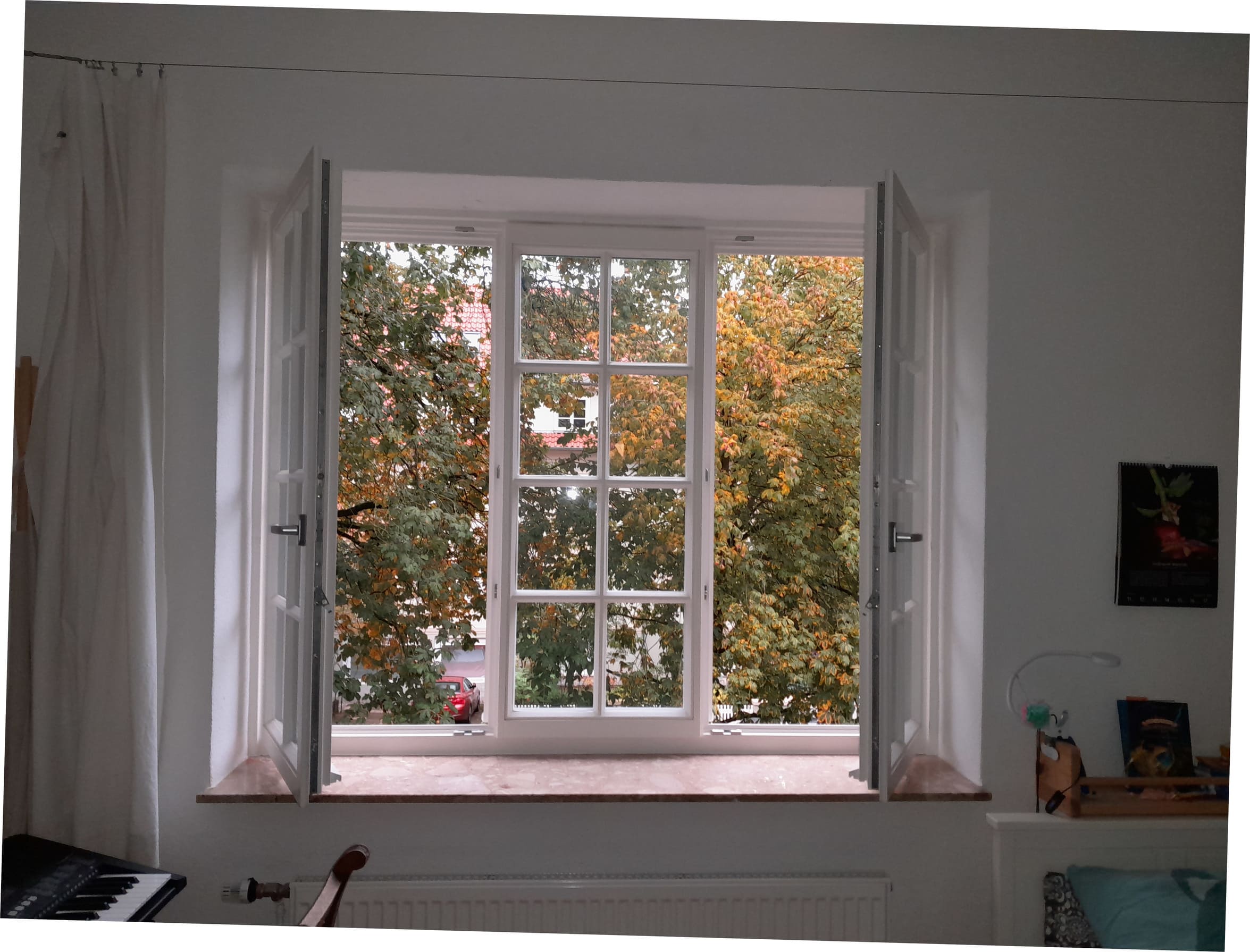 Fenster, Holzfenster, Einwärtsöffnende FensterDer Austausch der Fenster hatte einen entscheidenden Einfluss auf das Erscheinungsbild des gesamten Hauses.
